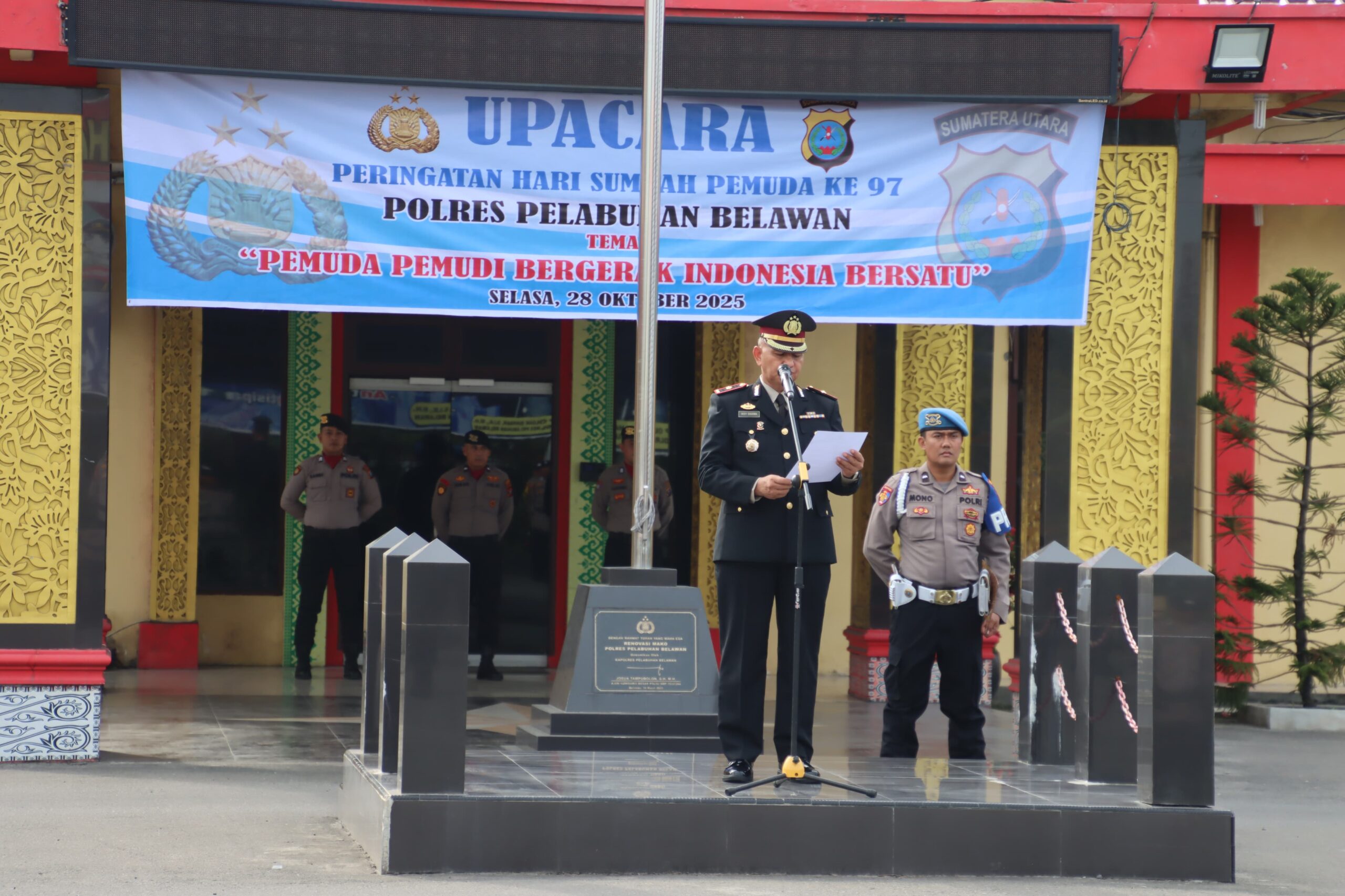 Kompol Dedy Dharma membacakan amanat Menpora dalam Upacara tersebut, serta menyampaikan bahwa momentum Hari Sumpah Pemuda merupakan saat yang tepat untuk memperkuat semangat persatuan dan kesatuan bangsa, khususnya bagi para generasi muda.